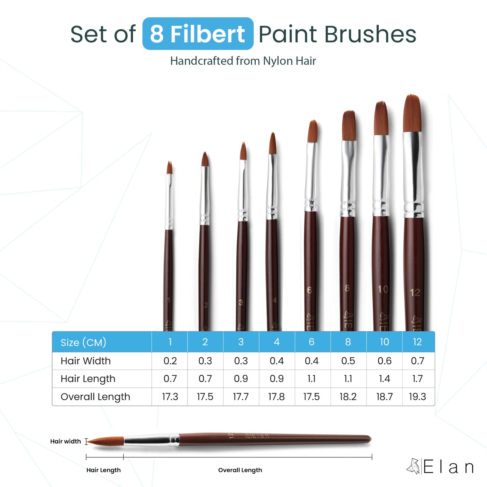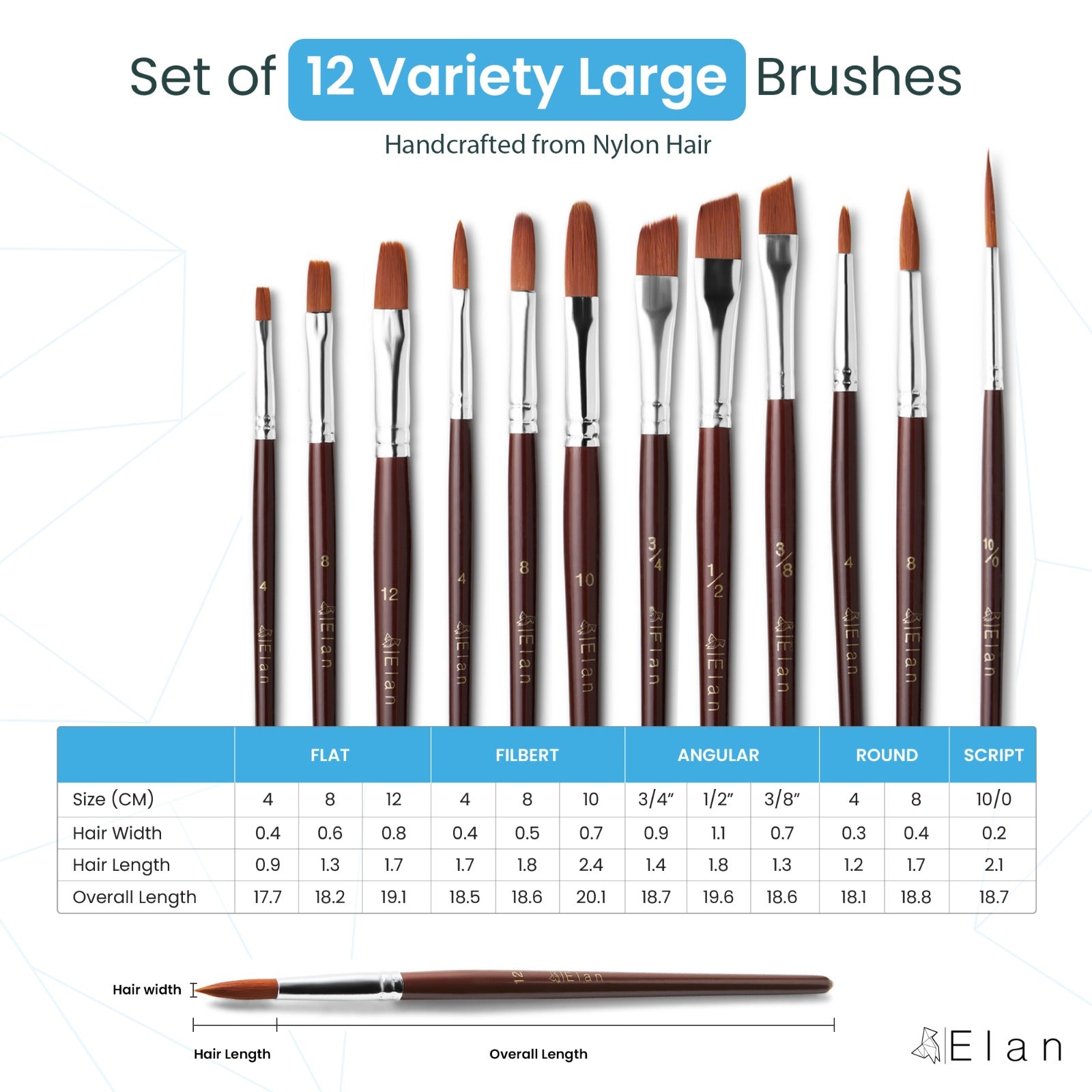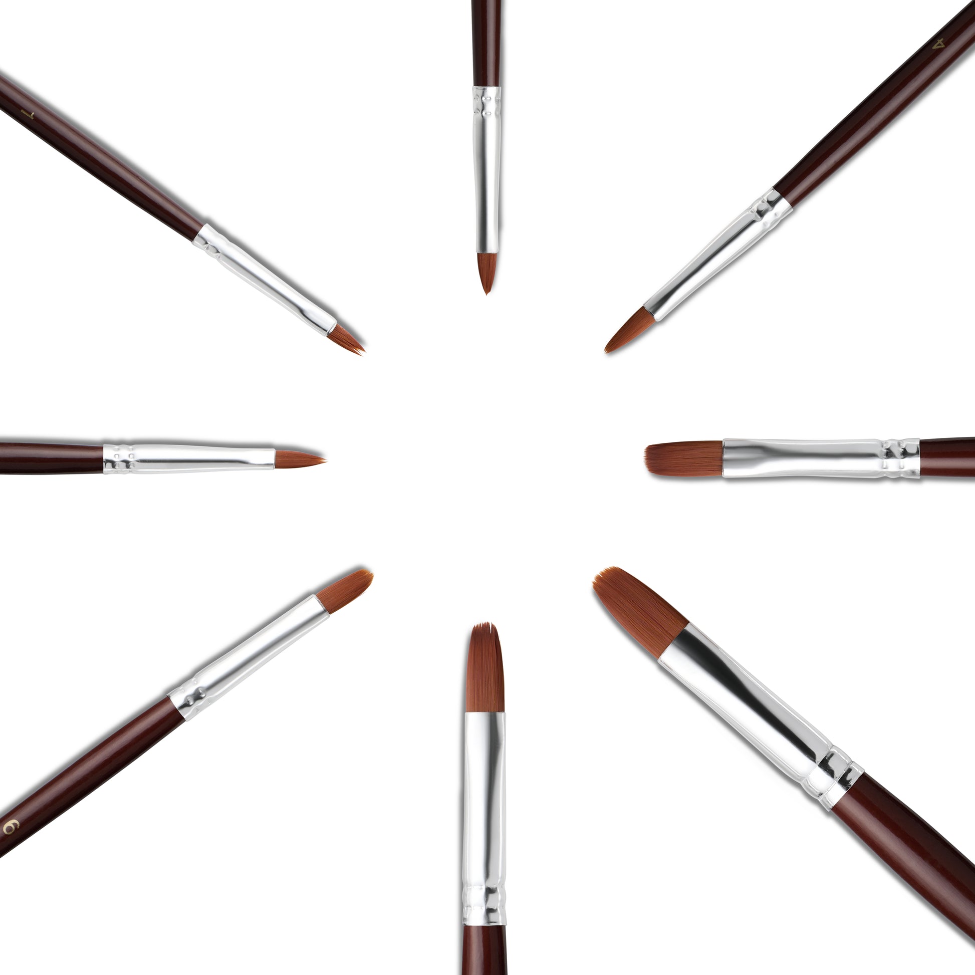 The paint brush synthetic nylon set features high-quality artist paint brushes in different sizes, offering options from precise detail work to broader strokes. These paintbrushes are suitable for artists of all levels. For exact dimensions, please refer to the product images.